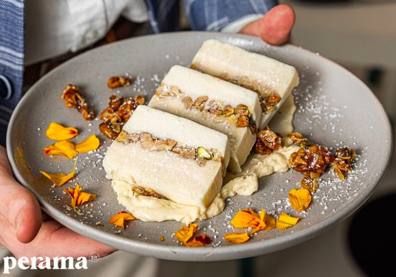 BANQUET MENU ~ $70pp Banquet ~ Tzatziki w Pita Bread Strained yoghurt, dill, garlic, extra virgin olive oil, cucumber, carrot, daikon Fava w Pita Bread Strained yoghurt, dill, garlic, extra virgin olive oil, cucumber, carrot, daikon Greekslaw Mixed cabbage, parsley, mint, dill, almonds, currants, spicy corn, mustard garlic dressing BBQ Corn Ribs Topped with candied olive crumb, grated gaviera & bukovo flakes Spanakopita Crispy filo pastry pie stuffed with spinach, ricotta and feta Fried Calamari Spicy tartare ouzo sauce ~ capers, ouzo, mayonaise, toasted fennel salt ImamBayildi Eggplant stuffed with spiced tomato, onion, shallots and leek Lamb Skaras 12 hour slow cooked boneless lamb forequarter, finished on charcoals, on a bed of tomato, mustard seed & cumin Smashed Lemon Oregano Potatoes Lemon, extra virgin olive oil, mountain oregano Caramel Baklava Sliced layers of cinnamon vanilla ice cream, baklava nuts and caramel sauce $85pp Banquet ~ ~ - $85pp Banquet ~ Tzatziki w Pita Bread Strained yoghurt, dill, garlic, extra virgin olive oil, cucumber, carrot, daikon Fava w Pita Bread Strained yoghurt, dill, garlic, extra virgin olive oil, cucumber, carrot, daikon Horiatiki Tomato, cucumber, spanish onion, red capsicum, feta, kalamata olives, dressed with extra virgin olive oil BBQ Corn Ribs Topped with candied olive crumb, grated gaviera & bukovo flakes Fried Haloumi Nest String haloumi deep fried, topped with tomato, basil & honey peppered figs Fried Calamari Spicy tartare ouzo sauce ~ capers, ouzo, mayonaise, toasted fennel salt ImamBayildi Eggplant stuffed with spiced tomato, onion, shallots and leek Pork Belly Baklava Layers of pork belly, dates, pistachio, filo pastry with date & mustard mastiha sauce Lamb Skaras 12 hour slow cooked boneless lamb forequarter, finished on charcoals, on a bed of tomato, mustard seed & cumin Smashed Lemon Oregano Potatoes Lemon, extra virgin olive oil, mountain oregano Caramel Baklava Sliced layers of cinnamon vanilla ice cream, baklava nuts and caramel sauce